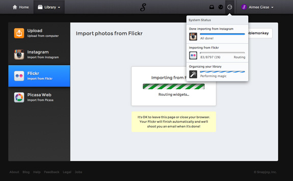I was able to import all my Instagram and Flickr photos into Snapjoy. For Instagram, now that the service is connected – every photo I upload there gets backed up to Snapjoy as well.